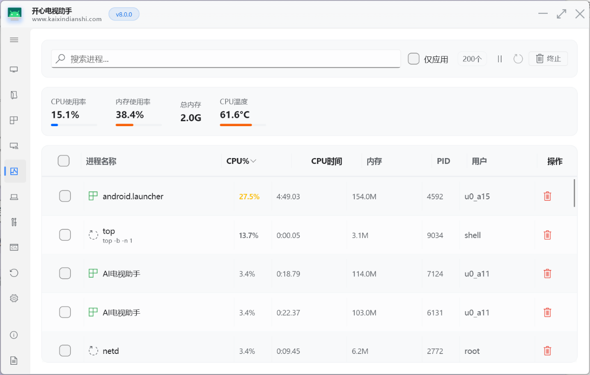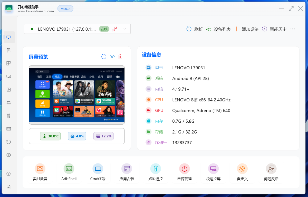 今天给大家分享一款功能强大的安卓设备辅助神器-开心助手8.2最新更新版本,剑心大神开发的一款安卓玩机工具,基本算是安卓必备的一款工具!此为2026.01.10最新版,界面和功能重新设计,功能更为丰富和强大!开心电视助手是一款针对安卓设备打造的远程管理工具。我们有了这个软件就可以非常方便管理自己的智能设备了,比如说盒子电视都可以轻松支持,还可以远程安装各种电视APP,方便用户的使用和安装应用,新的版本还支持刷第三方固件。